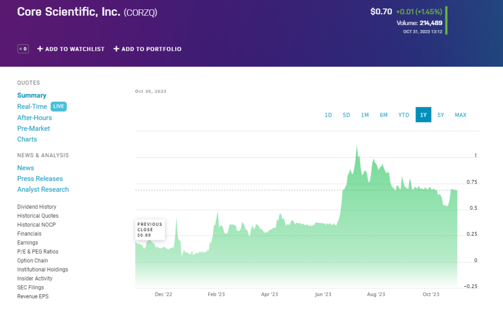 La quiebra de Core Scientific se decretó el 21 de diciembre de 2022. Se debió a múltiples factores, como la caída de más del 60% en el precio de bitcoin (BTC) a lo largo del año, el aumento de los costos de la electricidad y la creciente dificultad en la minería, a raíz de la mayor competencia en la industria. Fue la primera empresa minera de Bitcoin que cotizaba en bolsa que presentó su bancarrota. Desde entonces, la compañía ha entrado en un proceso de reorganización de sus deudas, amparada bajo la ley estadounidense.