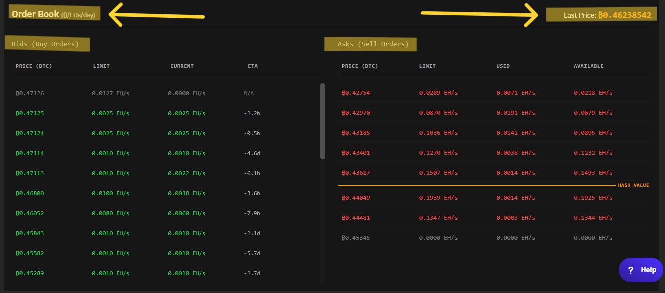 El precio en estas plataformas se estandariza bajo la métrica de BTC/EH/día. Esto significa que los valores se establecen en función de cuántos BTC cuesta alquilar un exahash (EH) de potencia durante un periodo de 24 horas.