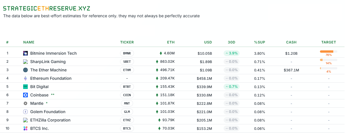 Tal como CriptoNoticias lo informรณ, Bitmine ha declarado como objetivo estratรฉgico adquirir el 5% del suministro total de ETH (suministro que hoy en dรญa es de 120,69 millones de ETH). Actualmente, la compaรฑรญa solo posee el 3,60% de ese suministro total.