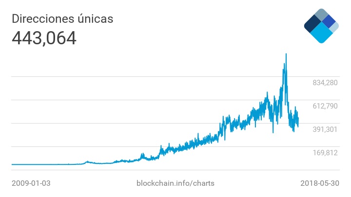 El perรญodo de mayor actividad de Blockchain, que no debe confundirse con la tecnologรญa que le da nombre a la compaรฑรญa, fue registrado a finales del aรฑo 2017, con casi 900 mil direcciones รบnicas provenientes de este servicio, aunque direcciรณn รบnica no debe confundirse con billetera รบnica, ya que de esta รบltima pueden provenir varias direcciones; asรญ, cantidad de billeteras creadas no es igual a nรบmero de usuarios.