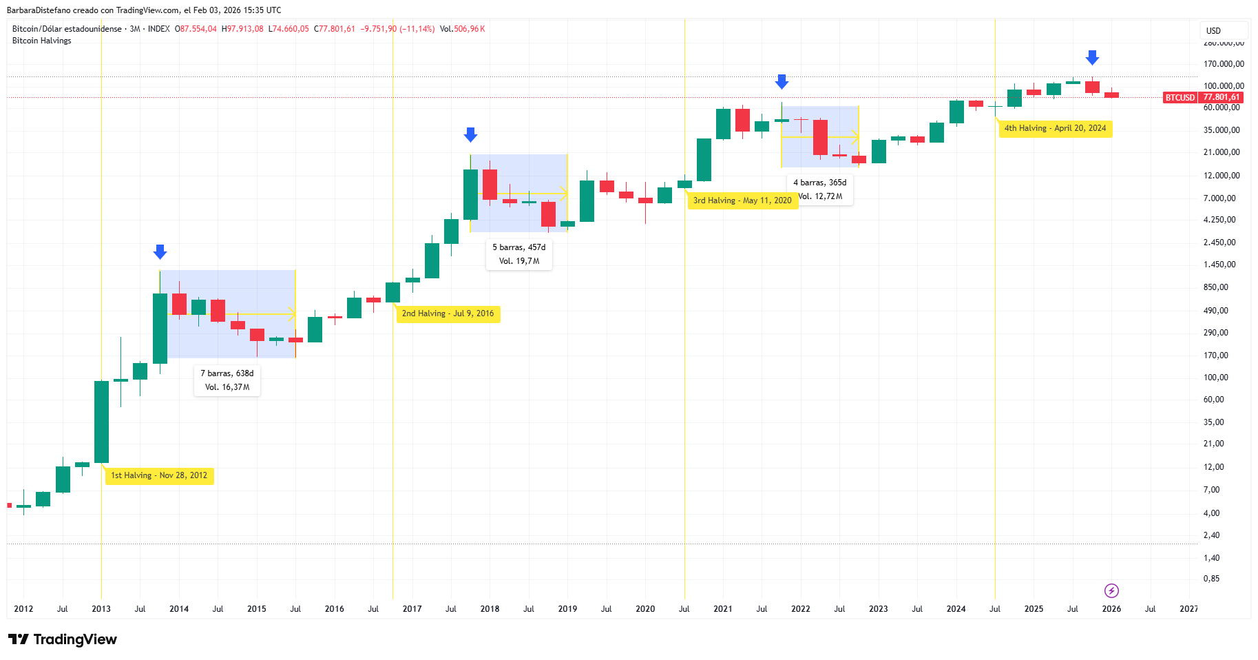 Casi tres meses pasaron desde que bitcoin (BTC) llegó a 126.000 dólares (USD), marcando un nuevo máximo histórico. Eso ocurrió el 6 de octubre de 2025, una fecha dentro de un margen de tiempo que rima con el pasado y hace pensar que el ciclo alcista del mercado culminó.
