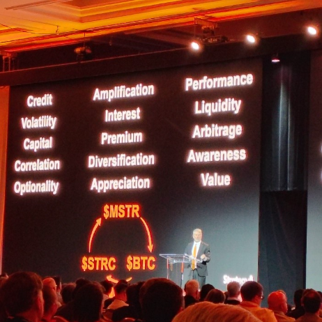La primera charla, que inauguró la conferencia, fue, por supuesto, de Michael Saylor, y se tituló “Digital Credit”. La charla tuvo como protagonista no a BTC sino a STRC (“Stretch”). STRC es una acción preferente perpetua que paga un interés de 11,25% anual. Según Saylor, STRC resuelve un dilema del inversor: