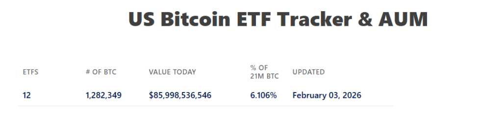 Este fenรณmeno se explica por una retenciรณn institucional sin precedentes. A principios de febrero de 2026, los ETF de Bitcoin al contado en EE. UU. poseen alrededor de 1,28 millones de BTC, una cifra que apenas se sitรบa un 5-6% por debajo de su mรกximo histรณrico.