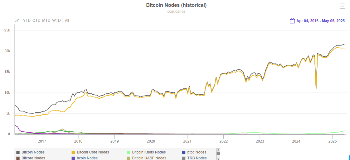 En este aspecto, la descentralización de Bitcoin también se refleja en su red de nodos con casi 22.000 nodos públicos completos distribuidos globalmente, según Coindance.