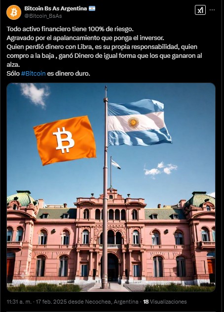 Desde 2021, Bukele promueve la adopciรณn de bitcoin, asรญ como la educaciรณn para empoderar a su poblaciรณn. Aunque su estrategia ha enfrentado crรญticas, nadie puede acusarlo de respaldar una shitcoin sin valor intrรญnseco. Milei, en cambio, eligiรณ un camino opuesto: en lugar de abogar por una herramienta de libertad financiera genuina, se vinculรณ con un esquema especulativo que enriquece a unos pocos y deja a muchos en la ruina.