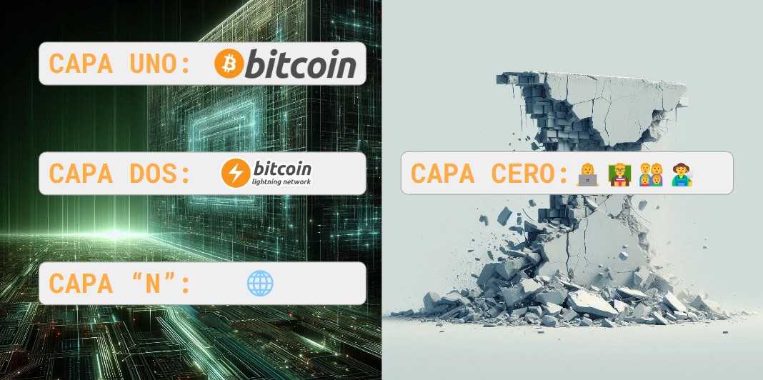 Antes de la capa uno de bitcoin tenemos la capa cero que consiste esencialmente en la suma de todas las acciones e inacciones realizadas por los usuarios de Bitcoin con relación a Bitcoin. La capa cero está compuesta por las interacciones de personas de carne y hueso que interactúan entre ellas con respecto a la red Bitcoin. Ya sea usando la capa uno en forma directa o indirecta a través de su capa dos o superiores.