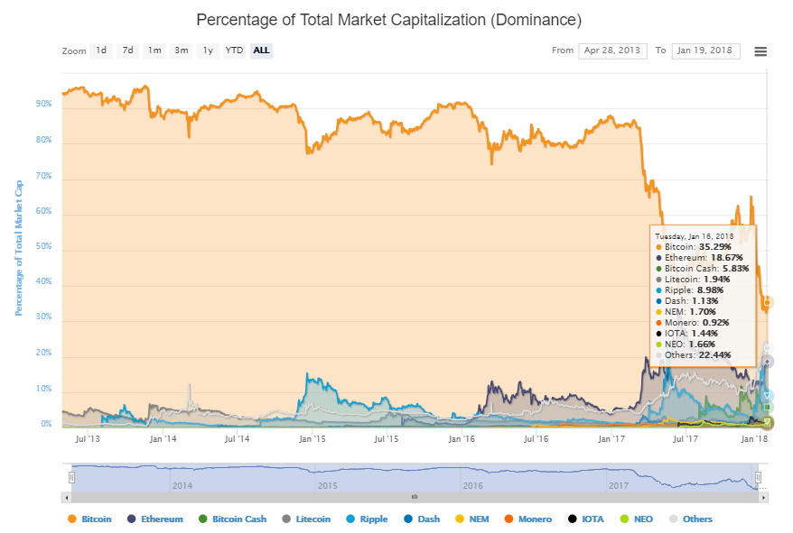 Uno de los motivos por el que los rendimientos crecientes atraen tanto la atención es porque tienden a crear “monopolios”, entendiéndose éstos como entidades que son tan buenas en lo que hacen que ningún competidor puede ofertar un sustituto cercano. Por ejemplo, el Bitcoin siempre ha supuesto más de un 50% del mercado de criptomonedas, aunque en la actualidad ocupe sólo un 35,2%, y otras como Ethereum y Ripple ostenten un 18,6% y un 8,3%, respectivamente.