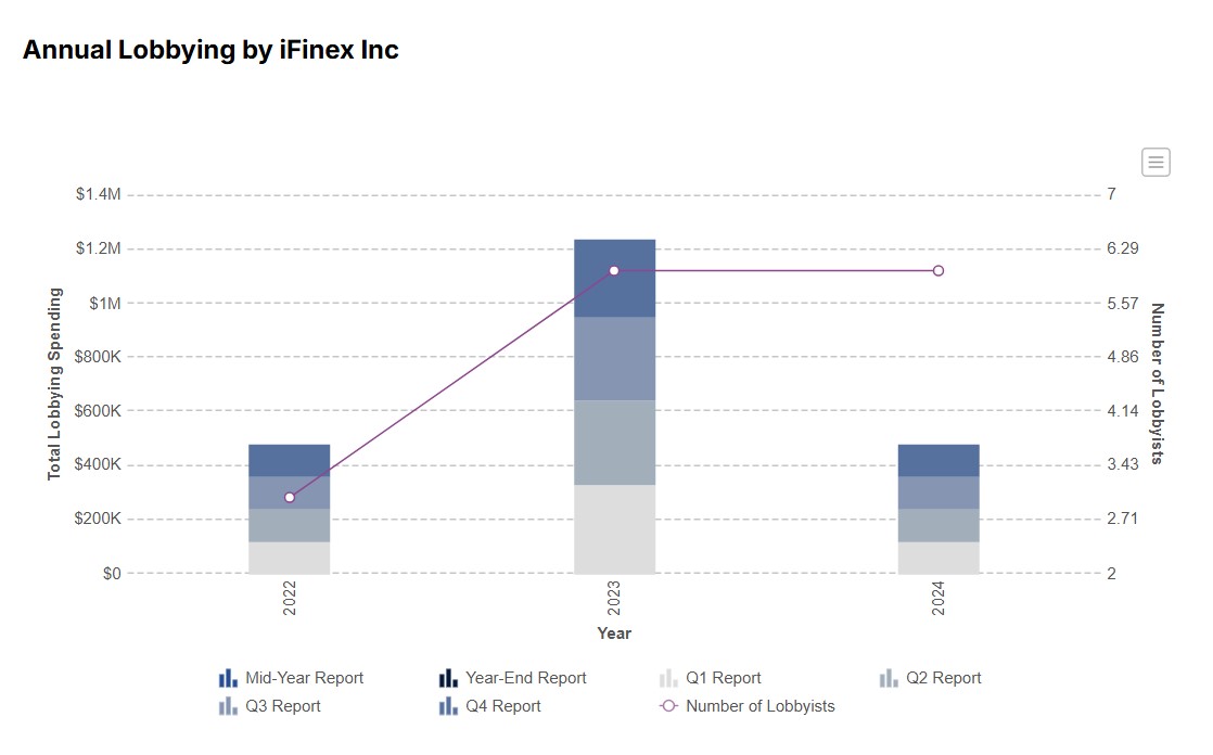 Por el lado de Tether, si bien no se conoce ninguna donación directa con Trump, su empresa matriz, iFinex, aumentó el gasto en cabildeo en más de un 150% en 2023, alcanzando USD 1.2 millones. Esto la posicionó como el tercer mayor gastador en lobby entre las empresas de criptomonedas, detrás de Coinbase y la Blockchain Association. En 2023, Tether duplicó su número de lobbyistas a seis, incluyendo a Carlos Trujillo, exmiembro republicano de la Cámara de Representantes de Florida y embajador bajo Trump. En 2024 redujo su inversión en cabildeo USD 480.000, aún así duplicando la inversión de Circle.
