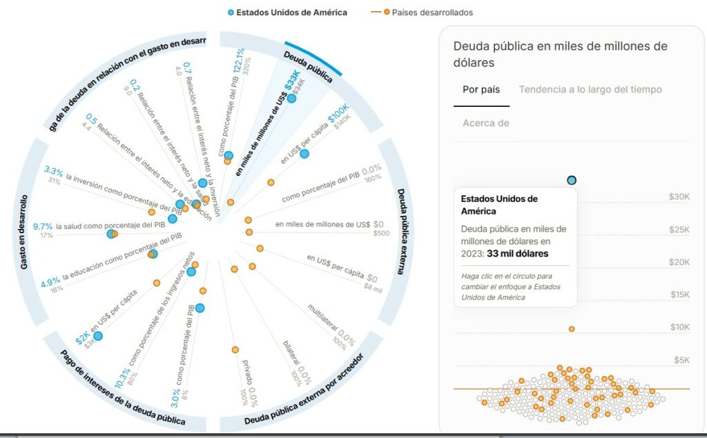 Uno de esos factores que impulsan la desdolarización proviene precisamente de Estados Unidos y de su situación financiera alarmante, con un déficit fiscal crónico y una deuda que supera los 34 billones de dólares. La capacidad del país para imprimir dólares a voluntad para enfrentar su crisis podría, a largo plazo, desencadenar presiones inflacionarias devastadoras.