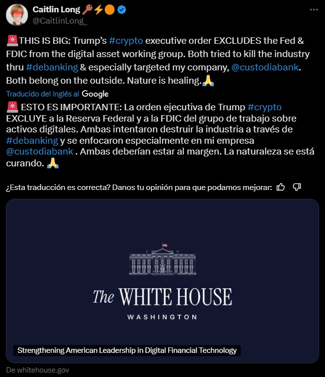 «Excepto en la medida en que lo exija la ley, las agencias tienen prohibido emprender cualquier acción para establecer, emitir o promover CBDC dentro de la jurisdicción de los Estados Unidos o en el extranjero», figura en la orden ejecutiva. Aunque tenemos la obligación de mantenernos atentos a sus decisiones —haga lo que haga—, en este caso es justo reconocerlo: Trump ha tomado una medida acertada. No puedo imaginar un solo escenario en el que una CBDC haya sido beneficiosa para los Estados Unidos, ni para ningún otro país en el mundo.