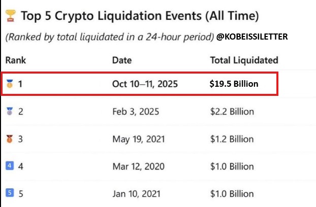 Las liquidaciones en derivados alcanzaron los 19.500 millones de dólares en un solo día, un récord absoluto que dejó atrás episodios emblemáticos como la caída de FTX, el derrumbe de LUNA o el crash del COVID de 2020.