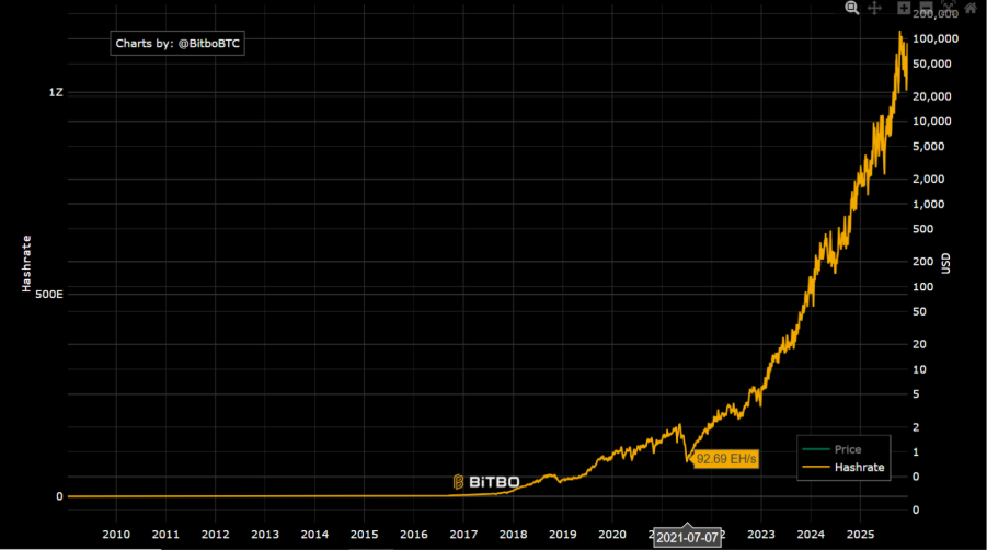 El ajuste de dificultad es la forma en que Bitcoin encuentra su homeostasis. Cuando Bitcoin fue prohibido en China en 2021, hubo una caída drástica en el poder de minado y, por tanto, se ralentizó levemente la emisión de monedas. 2.016 bloques después, la dificultad de minado se ajustó y el cronograma de emisión siguió prácticamente inalterado.