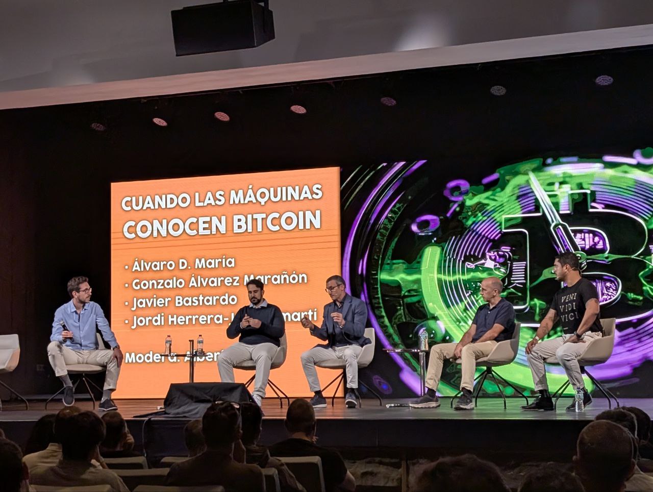 Para hacer ladrillo, hay que meter las manos en el barro. Bajo esta premisa, el primer día del evento, viernes 3 de octubre, comenzó ofreciendo a los asistentes conocimiento experiencial: talleres de temáticas tan variadas como minería digital, Nostr, herencia de bitcoin, inversión, finanzas descentralizadas. Incluso, dando cabida a quienes apenas comienzan en el ecosistema, un taller introductorio a Bitcoin dirigido a todas las edades. Lo único malo: todos los talleres coincidían en horario, por lo que había que elegir sabiamente donde se alineaban mejor nuestros intereses.