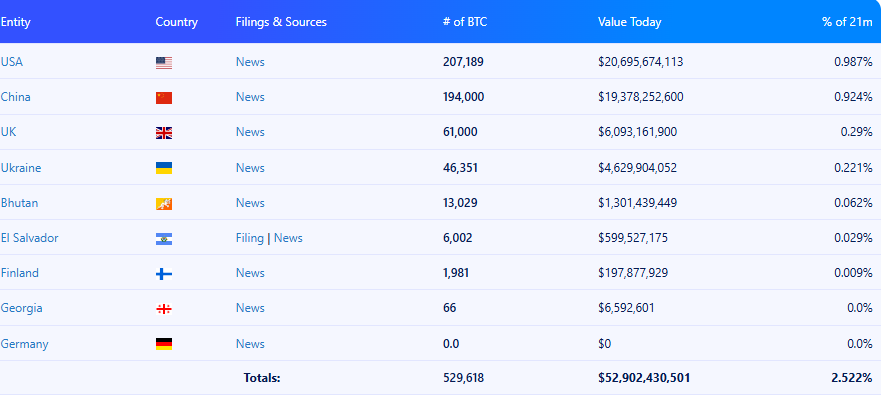 Según las estadísticas de Buy Bitcoin Worldwide, el gobierno de EE. UU. posee actualmente 207.189 BTC por un valor de alrededor de 20 mil millones de dólares. Aunque los datos de Arkham Intelligence disminuyen la cifra a 198.012 BTC.