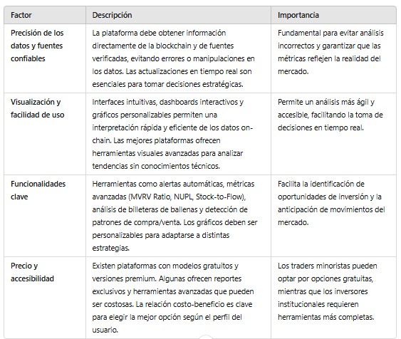 Factores clave para elegir una plataforma de análisis on-chain