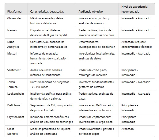 A la hora de elegir una herramienta de análisis on-chain, es fundamental considerar el nivel de experiencia del usuario y el tipo de información que necesita. Mientras algunas plataformas están diseñadas para traders e inversores avanzados con conocimientos técnicos, otras ofrecen una experiencia más accesible para principiantes o entusiastas con mediana experiencia en el mercado de criptomonedas.