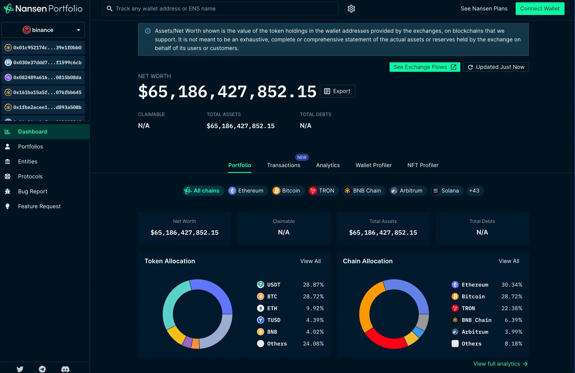 - Monitorización en tiempo real de wallets de ballenas y entidades relevantes en el mercado.