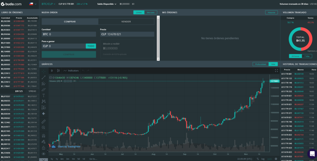 Si bien las herramientas de trading que encontrarรกs dentro Buda son muy limitadas, favorece el hecho de ser uno de los pocos exchanges latinoamericanos que permiten operar con total libertad entre criptomonedas y las diferentes monedas nacionales disponibles aquรญ.
