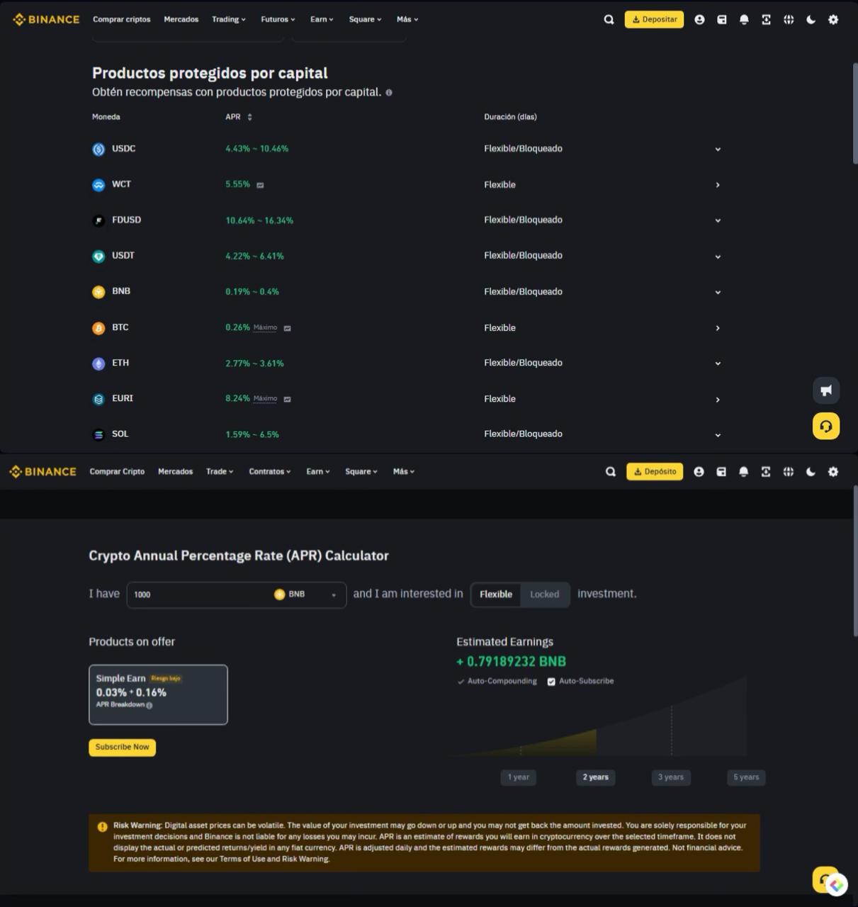- Rendimiento (APR/APY)