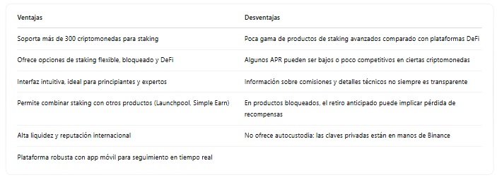 Para principiantes la recomendación es Binance o Lido Finance. La primera es ideal para quienes recién se inician en el mundo del staking. Su interfaz es clara, simplifica el proceso y presenta el APR de forma directa. Además, no requiere conocimientos técnicos sobre validadores o redes. La segunda es una opción atractiva en redes como ethereum, es una interfaz intuitiva, con procesos simplificados y soporte.
