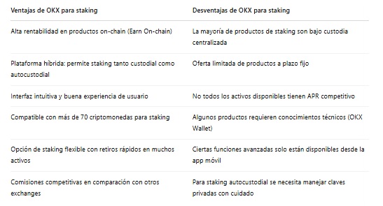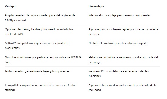 Para usuarios intermedios la recomendación es OKX o Gate.io, ya que ofrecen mayor variedad de productos de staking, APR competitivos y herramientas avanzadas pero accesibles.