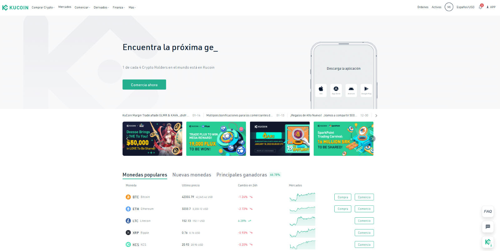 Como cualquier otro exchange, KuCoin ofrece un servicio de trading spot, el cual posee mรกs de 500 criptomonedas disponibles para intercambiar.