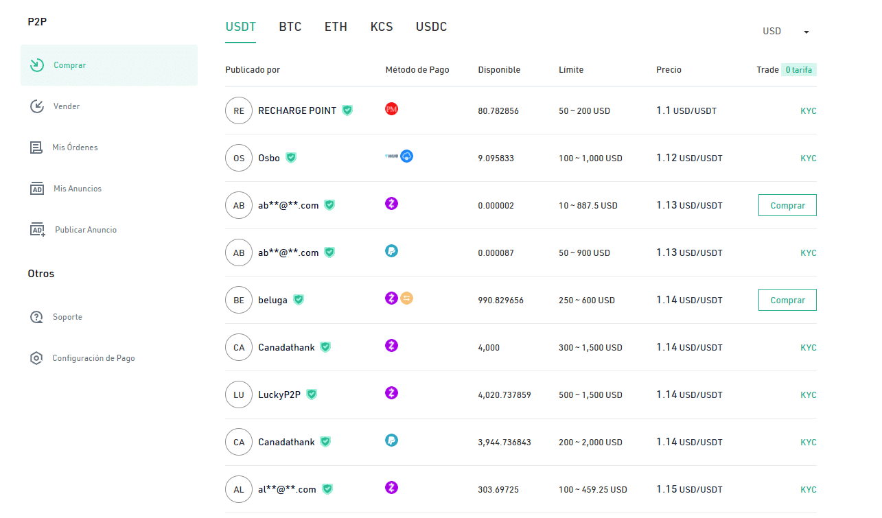 • Mรฉtodos de pago fรญat en KuCoin