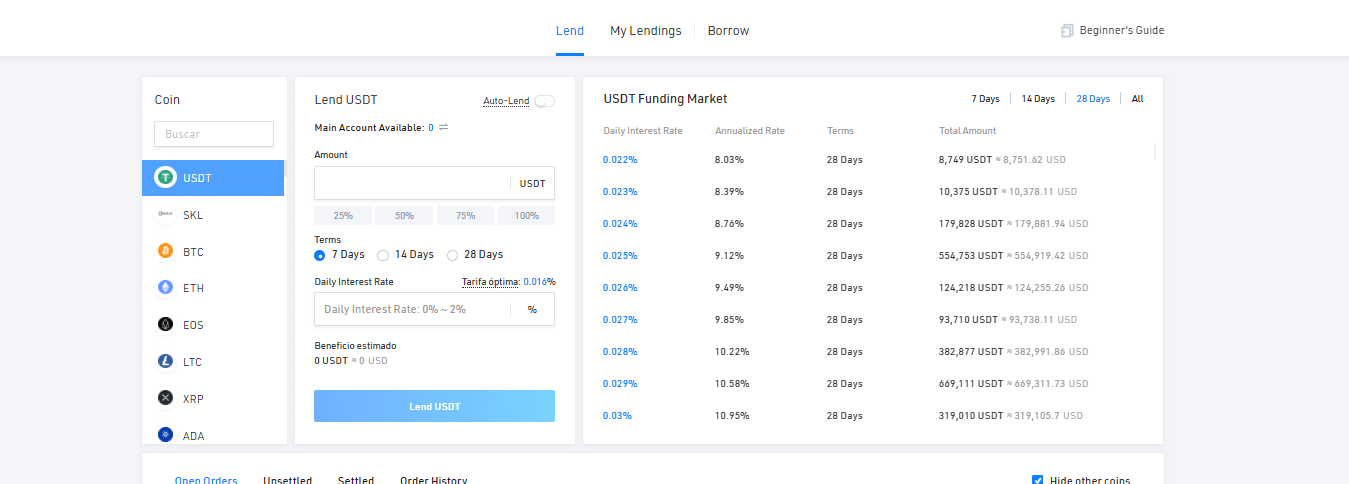 El trading de margen o apalancado, tambiรฉn es otro producto disponible dentro de KuCoin. Aquรญ, aunque se cuenta con gran variedad de pares para el intercambio, la cantidad es bastante limitada. Los niveles de apalancamiento en el margin tading tienen un lรญmite mรกximo de 10x. KuCoin permite utilizar margen cruzado o aislado, dependiendo de las necesidades del trader.