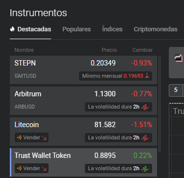 Adicionalmente, cada activo posee ciertas etiquetas con señales de acción de trading y recomendaciones que contextualizan al usuario frente al activo y le dan más información sobre cómo operar. Al momento de la escritura de éste artículo, Libertex muestra una señal de venta para Litecoin (LTC) y el Trust Wallet Token (TWT).