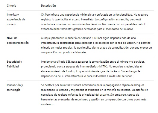 CK Pool está diseñada para mineros que desean operar de manera independiente sin la necesidad de mantener un nodo completo de Bitcoin, la moneda exclusiva con la que opera.