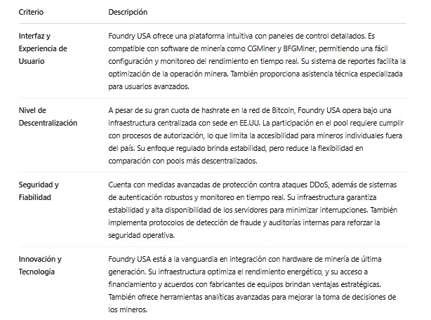 Si bien Foundry USA opera a nivel global y permite la conexión de mineros desde cualquier parte del mundo posee requisitos de registro específicos que pueden restringir la participación directa de algunos usuarios, especialmente aquellos que no se encuentran en Estados Unidos, donde opera principalmente y se encuentran sus servidores.