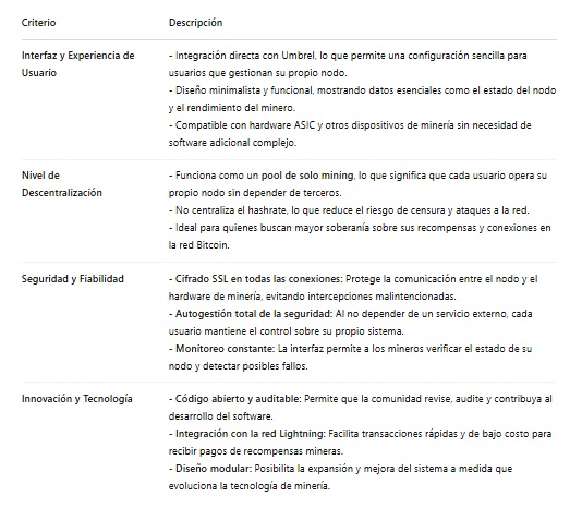 Public Pool, de código abierto, es una solución innovadora que permite a los mineros operar su propio pool de minería en solitario utilizando su nodo personal en Umbrel, la empresa detrás de la creación de este pool.