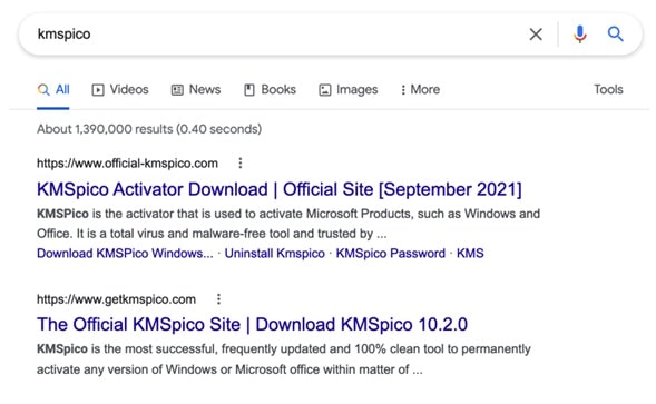 Segรบn la investigaciรณn, el software malicioso no se diferencia del original en una bรบsqueda en Google. Vale recordar, de todos modos, que el ยซoriginalยป se trata de un software que instala versiones ilegales de licencias para Windows. Debido a que es utilizado para una actividad ilegal es que no cuenta con ningรบn tipo de verificaciรณn.