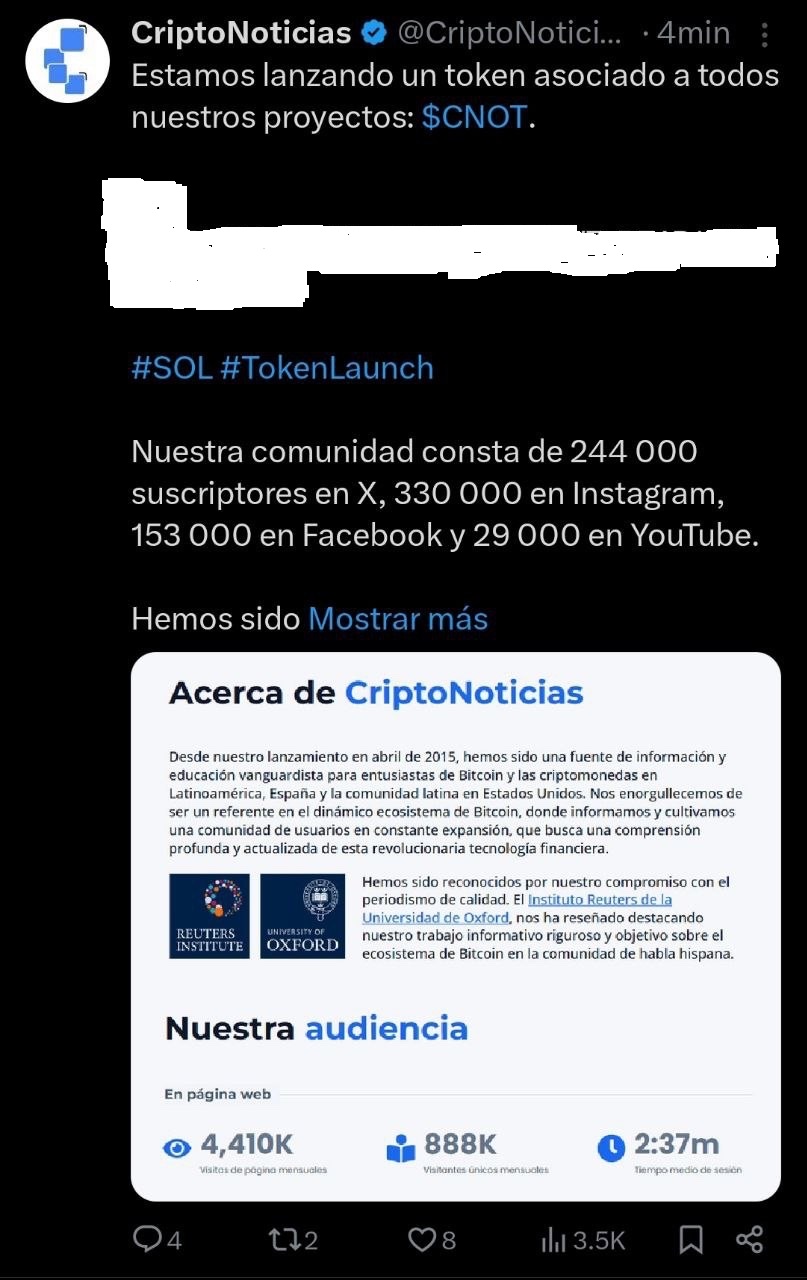 La ola de ataques también afectó a este medio. La cuenta en X de CriptoNoticias repentinamente se vio infiltrada este 11 de febrero por un mensaje que promovía el lanzamiento de un token.