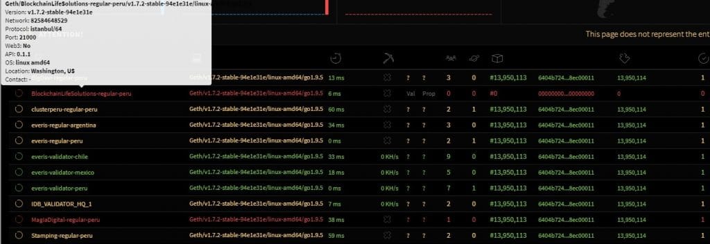 En comentarios exclusivos para CriptoNoticias, Zárate informó que, debido a que LAC-Chain es una red permisionada, el personal de BID LAB tiene potestad de aprobar qué nodos se conectan a la red. Como puede verse en este portal, esta cadena de bloques cuenta con 11 nodos, de los cuales uno, denominado «BlockchainLifeSolutions-regular-peru», ubicado en Washington, no se encuentra activo.