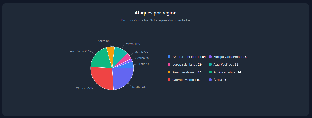 La tabla de gravedad por región refuerza la preocupación: los ataques no solo aumentan, sino que tienden a ser más violentos.