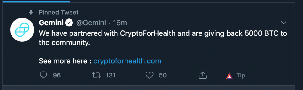 Los perfiles muestran un mensaje anclado que dice ยซnos hemos aliado con CryptoForHealth y estaremos dando 5.000 BTC de vuelta a la comunidadยป. Y luego envรญa a un sitio web que muestra la reconocida estafa del ยซgiveawayยป, o regalo, en la que se incita a enviar bitcoins a una cartera con la promesa de que se devolverรกn multiplicados. No se sabe quienes estรกn detrรกs del ataque.