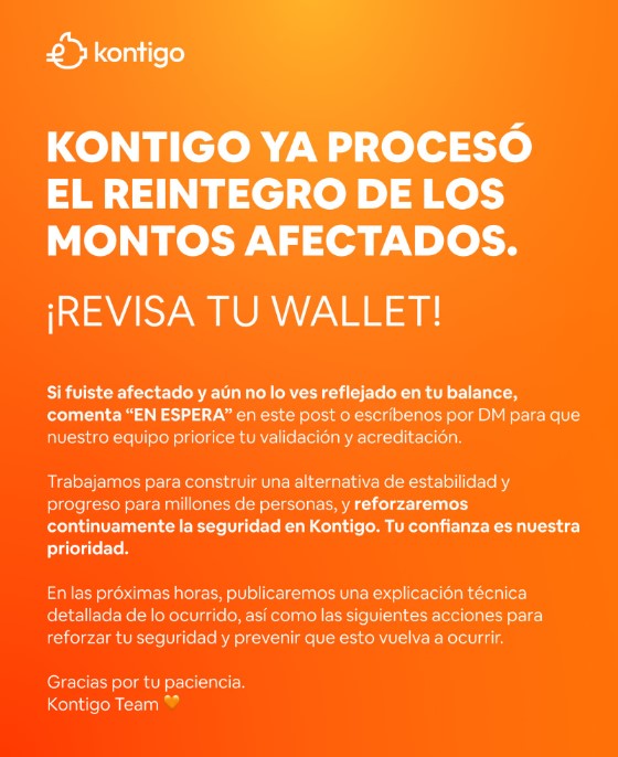 La plataforma venezolana de servicios financieros con activos digitales, Kontigo, completó el proceso de restitución de fondos a los usuarios que resultaron afectados por un reciente hackeo.