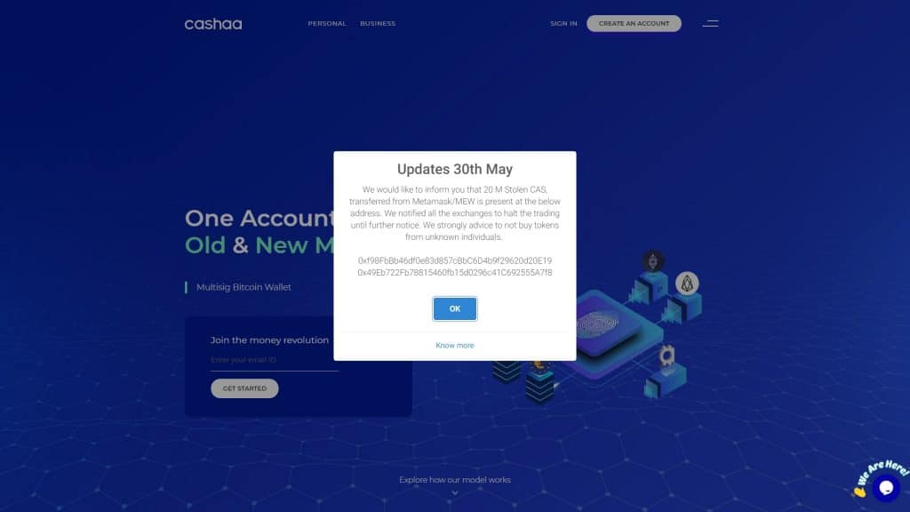 Cashaa suspendiรณ el trading en las bolsas para eliminar la posibilidad de transferir fondos robados.