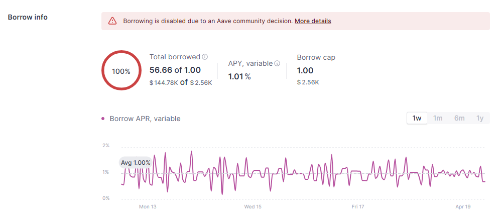 Como consecuencia de este hecho, la tasa de utilización de ETH en Aave llegó al 100%, mientras el token de gobernanza AAVE se desploma un 20% en las últimas 24 horas.