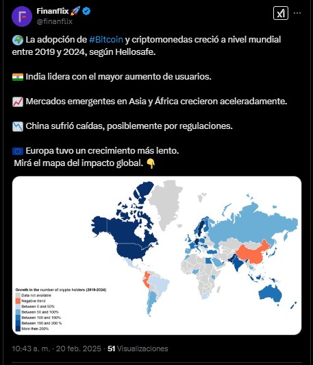 En la actualidad, Nigeria, la economía más grande de África, enfrentó una inflación superior al 24% en enero de 2025. Allí, bitcoin y otros activos digitales se han convertido en una válvula de escape para la población, elevando así el volumen comerciado con criptomonedas. En 2023, se registraron más de 21.000 millones de dólares en operaciones de criptomonedas con la naira.