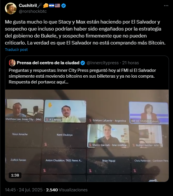 Después de todo, la cuestión ya no es si El Salvador compra bitcoin, sino por qué existe una brecha tan grande entre su relato público y sus informes oficiales. Y adicionalmente queda la duda de ¿por qué el gobierno de El Salvador no ha cuestionado públicamente estos informes del FMI?, como se lo exponen algunos miembros de la comunidad.