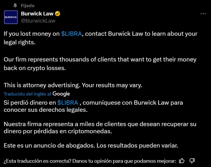 El estudio Burwick Law se especializa en casos relacionados con activos digitales. Según su página web, su objetivo es asistir a inversores en tokens y NFTs para exigir responsabilidad a los creadores de los proyectos. Esta demanda se suma a la que ya fue presentada por el bufete Moyano y Asociados, cuyo socio principal es el abogado Mariano Adalberto Moyano Rodríguez. En definitiva, el caso no deja de adquirir nuevas dimensiones.
