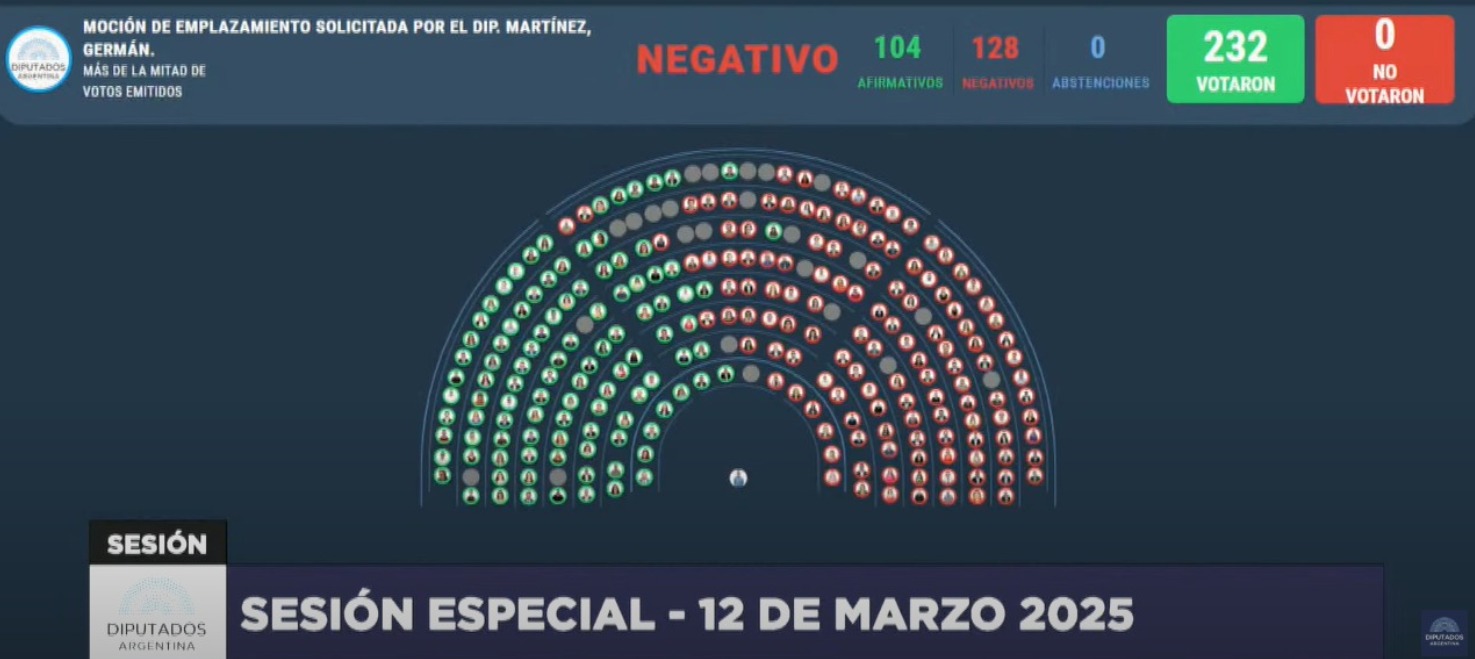 Sin embargo, a eso de las 14:45, con 104 votos a favor y 128 en contra, se rechazó una propuesta impulsada por el kirchnerismo para convocar a la Comisión de Juicio Político y tratar los expedientes correspondientes. Representantes de Hacemos Coalición Federal, la Coalición Cívica, Democracia para Siempre y la Unión Cívica Radical se distanciaron de la iniciativa kirchnerista.