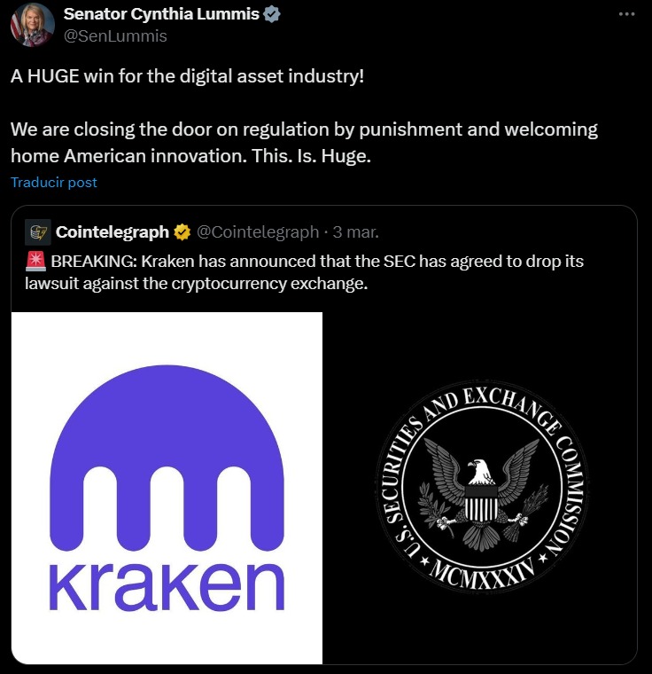 Kraken ya puede unirse al bloque de Coinbase, Uniswap y otras compaรฑรญas, ya que la Comisiรณn de Bolsa y Valores de los Estados Unidos (SEC) ha desestimado el litigio que mantenรญa contra el exchange, el cual comenzรณ a finales de 2023. De manera similar, Yuga Labs, conocida por su trabajo en el รกmbito de los tokens no fungibles (NFT), tambiรฉn celebrรณ una importante victoria. La empresa emitiรณ un comunicado en el que informรณ que la SEC habรญa cerrado la investigaciรณn en su contra.