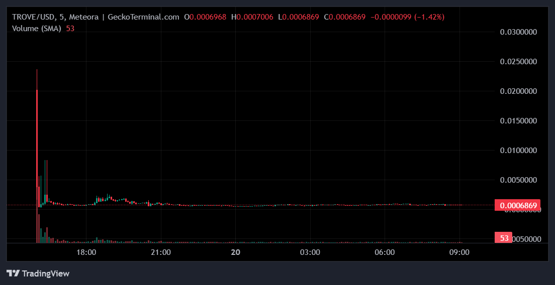 El impacto financiero de esta decisión fue inmediato y devastador para los tenedores minoristas. El token TROVE se lanzó en Solana tras varios retrasos reportados y se desplomó en 96% en las últimas 24 horas.