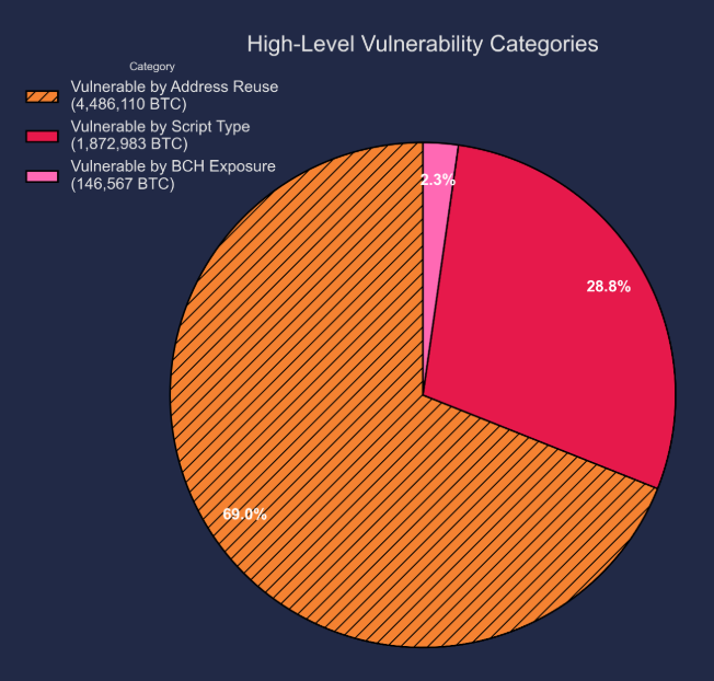 Los analistas aclaran en su reporte completo que en la actualidad, todos los fondos gastables en Bitcoin son vulnerables a la cuántica, casi sin excepción, debido al hecho de que utilizan firmas digitales basadas en criptografía de curvas elípticas (ECC), que podrían romperse gracias a las computadoras cuánticas criptográficamente relevantes (CRQC). Sin embargo, aclaran que las condiciones que afectan a un tercio del bitcoin hoy circulante (32%) las hace especialmente vulnerables.