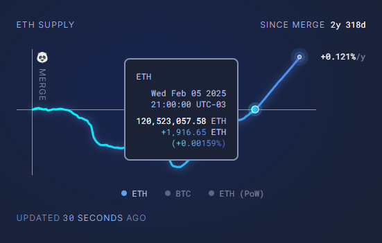 Al tiempo de este artรญculo, los datos indican que el suministro de ether superรณ a la quema de ese token en un 0,12% desde la actualizaciรณn The Merge, impuesta en septiembre de 2022: