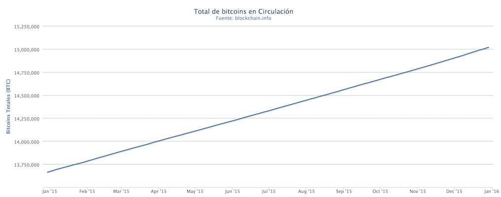 Como mencionamos anteriormente, el número de bitcoins en circulación también ha aumentado, alcanzando una cantidad de 15 milllones en total. La cantidad de bitcoins en circulación es de importancia para la comunidad Bitcoin debido a que se estima que el valor de las criptomonedas aumentará mientras más cerca se encuentre el número máximo de bitcoins en circulación.