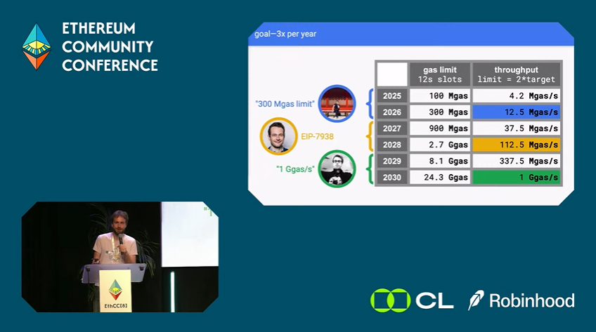 “Tengo la certeza de que entraremos en una era de giga gas para la L1, con transacciones que consuman un promedio de 100.000 gas (cada una), lo que equivale a aproximadamente 10.000 TPS”.